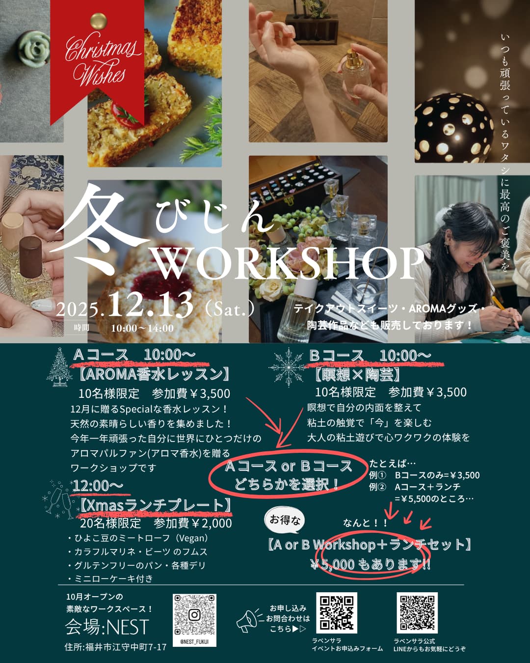 🈵2025/12/13(土)冬びじんワークショップのお知らせ🌿お申し込みフォーム