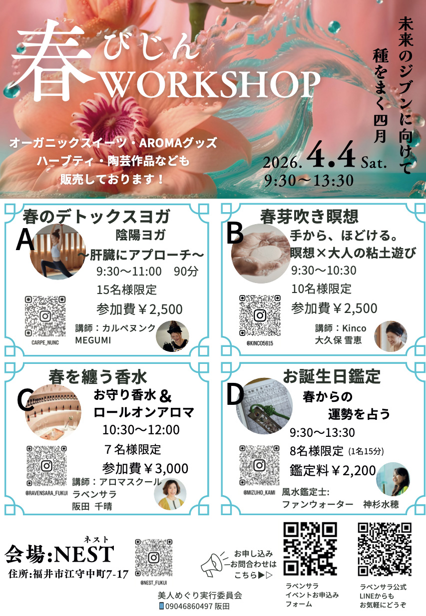 2026.4.4(Sat)春びじんワークショップ ~未来のジブンに向けて種をまく四月〜 お申し込みフォーム